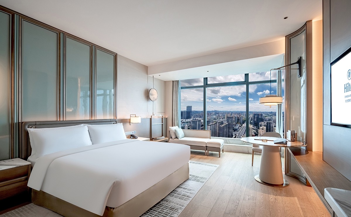 宽敞舒适,纵览城市或湘江美景,包含行政酒廊礼遇:行政酒廊双人下午茶(14:30-17:00),行政酒廊双人欢乐时光(18:30-20:00),使用地点:51楼行政酒廊