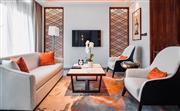 尊貴高爾夫景觀套房設有帶瑜伽床和茶幾的23平方米露臺、地暖、空調、黑色胡桃木實木家具、法式窗戶和特大床。浴室設有步入式淋浴間和浴缸、智能電視、獨立盥洗室、iPad mini4、咖啡機、免費無線上網、Bose聲控音響系統、筆記本電腦尺寸的保險箱、免費迷你吧,包括可樂、雪碧和橙汁。套房面積:92 平方米。