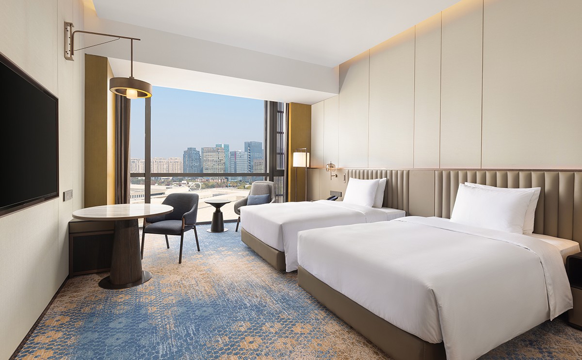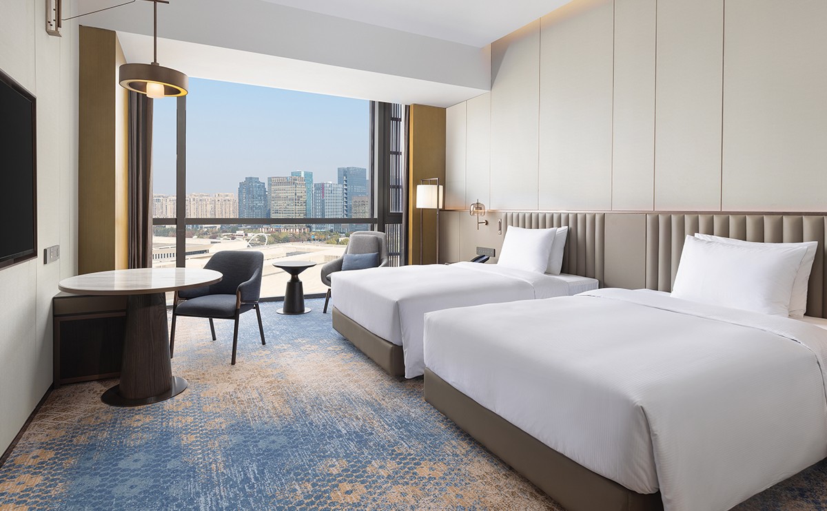 舒适双床,空间开阔,现代简约设计。