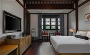 至尊套房 - 景观复式双卧室套房,庭院可欣赏花园和太湖美景,明式檀木家具,两间独立卧室配特大床,起居室,大理石浴室配浴缸和独立淋浴间,空调,免费无线上网,吹风机,有线电视,保险箱,迷你吧,茶壶和电热咖啡壶。