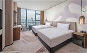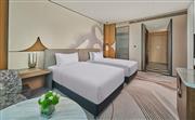 行政房(雙床)面積37平方米,空間寬敞,以現代典雅風格精心打造,配備舒適床品、科勒淋浴設施、55英寸高清電視、免費Wi-Fi與高速網絡接口,并選用英國品牌瑰柏翠天然洗護備品。入住此房型可尊享行政禮遇,包含全天候飲品與小食服務,以及晚間歡樂時光體驗,讓您在愜意舒適的居停時光中,為身心充滿電。
