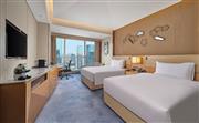 尊享房高居25至31層,坐擁天府大道壯闊城景。在約40平方米的舒緩空間內,配備舒適辦公桌與高速網絡。大理石浴室設有熱帶雨林花灑、浴缸及華美的化妝間。夜晚,在標志性的希爾頓大床與柔軟浴袍的包裹中安享酣眠,于云端私邸盡享放松與靈感。
