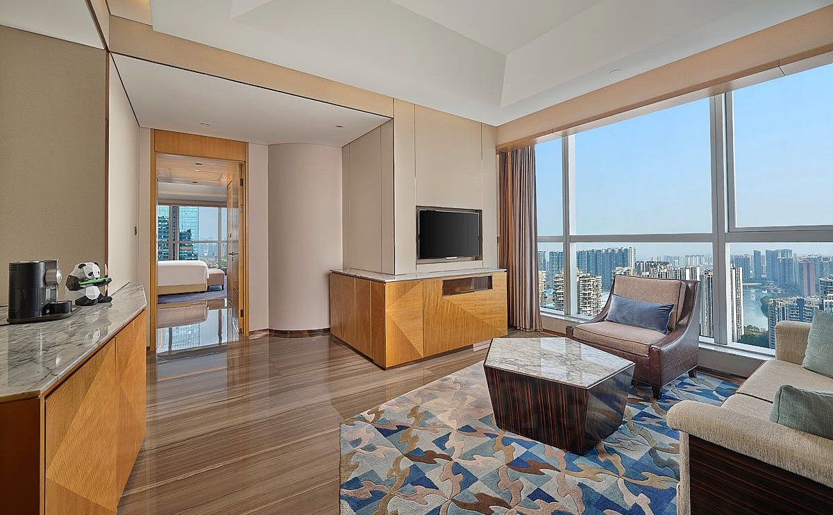 120平米的大使套房配備兩個豪華浴室,高清電視以及免費使用行政酒廊服務