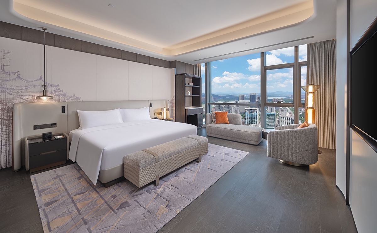 240平方米的總統套房享獨立休憩臥室、客廳雙高清電視,行政酒廊禮遇,還有干濕分離衛浴配雨林淋浴與浴缸,開啟難忘入住體驗。